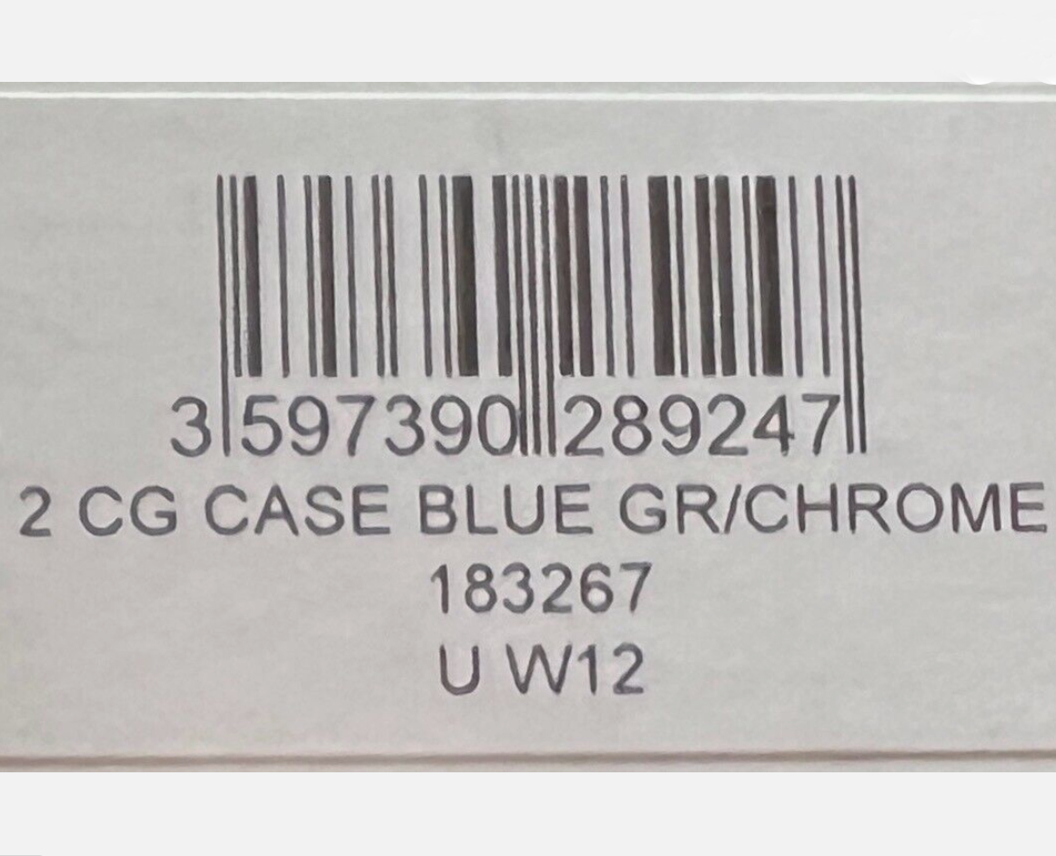 • Material: Blue Grained Leather with High Polished Stainless Steel Base