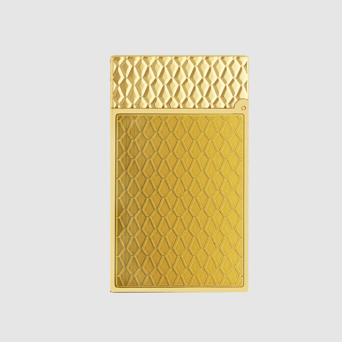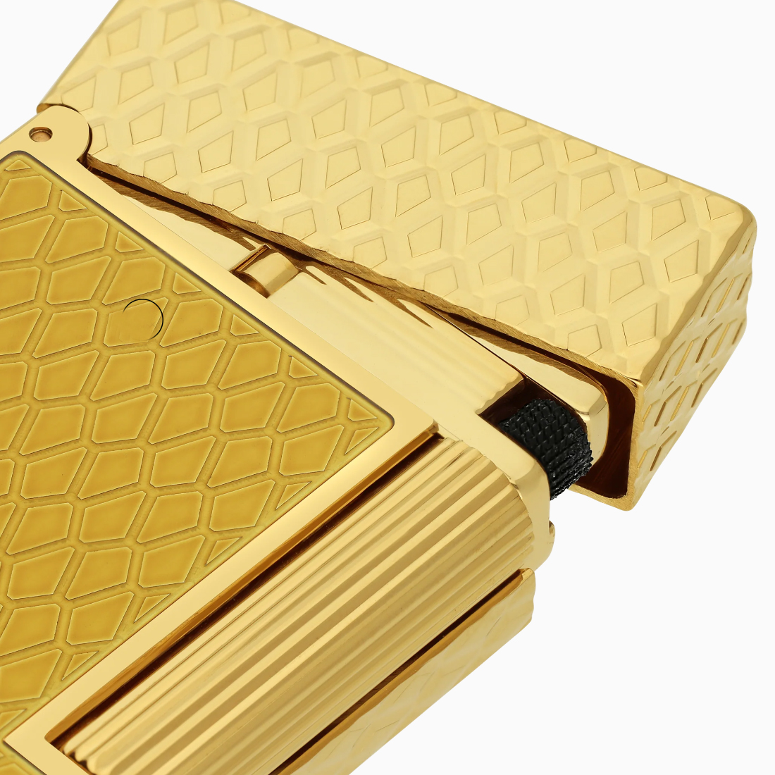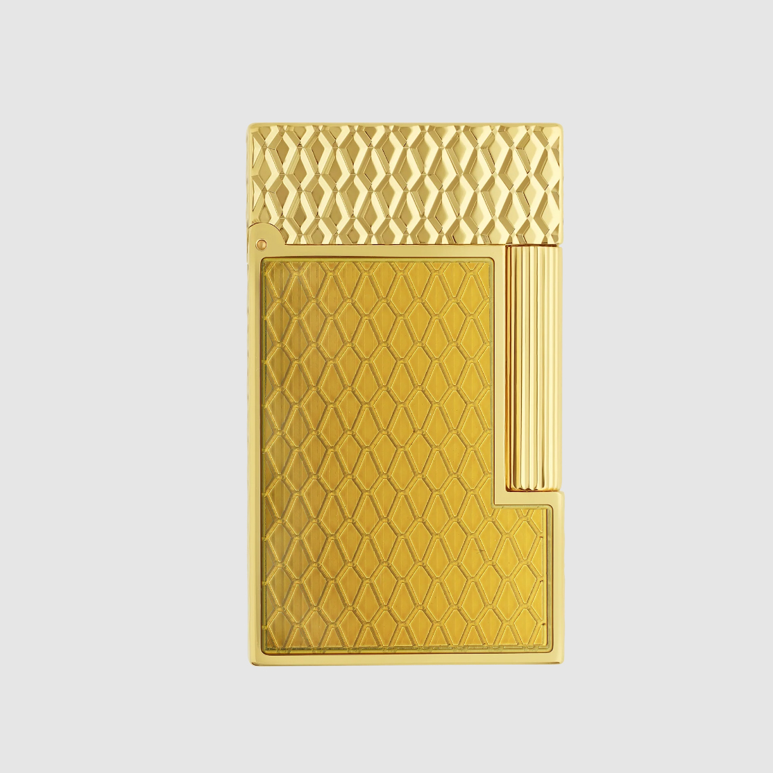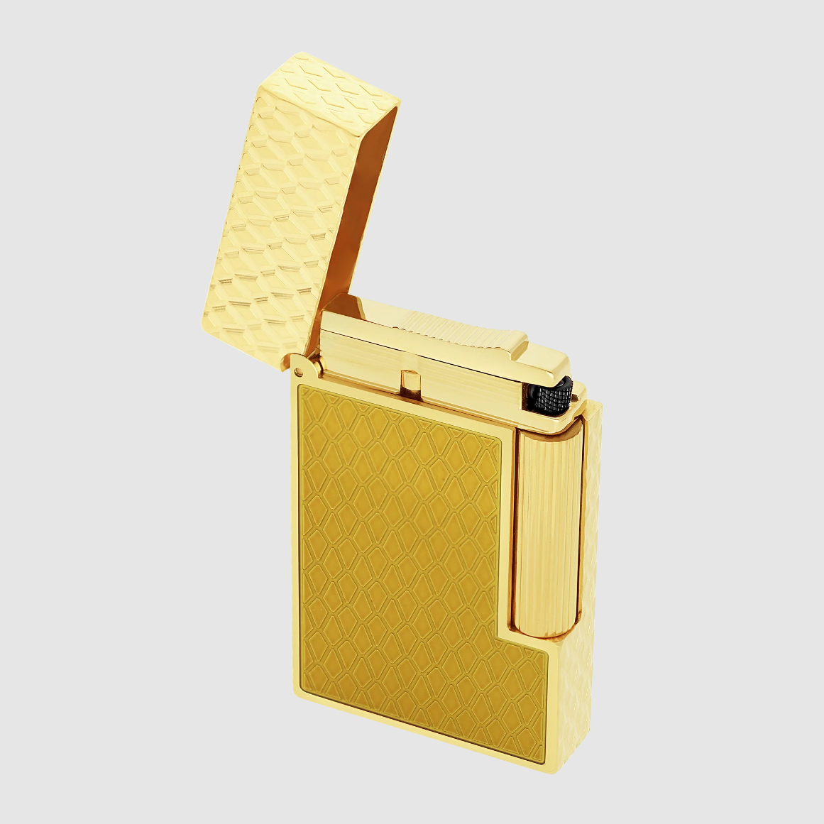 - Ligne 2 Vertical Lines Gold: 24k gold-plated with vertical line patterns; dual soft flame for cigars; plated for diverse decorative techniques without compromising the “ping.”