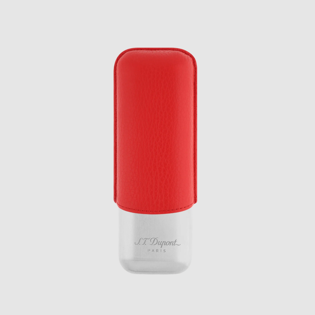 S.T. Dupont Red Leather & Metal Adjustable Cigar Case For 2 Cigars 183268