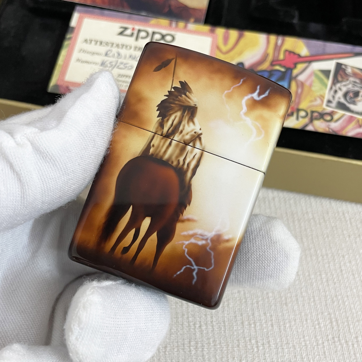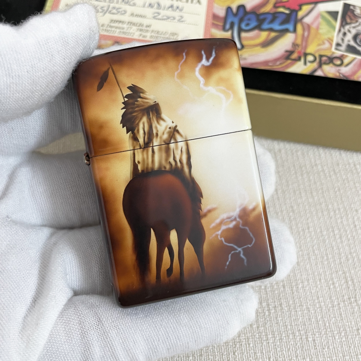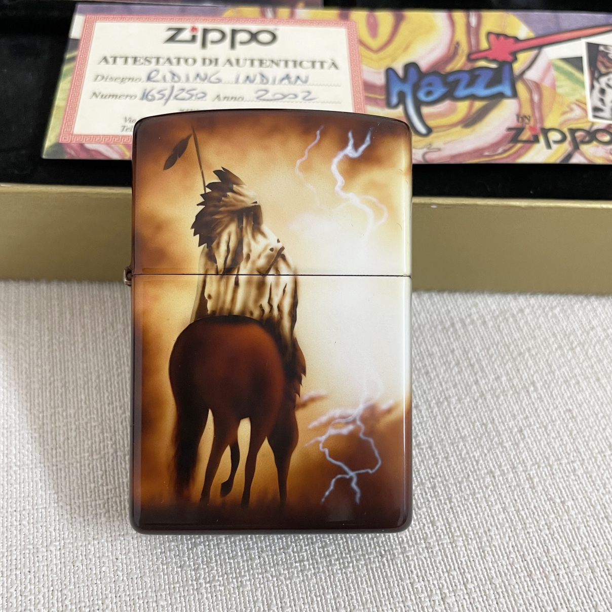Zippo 2002 Mazzi Airbrushed Riding Indian Limited Edition Lighter