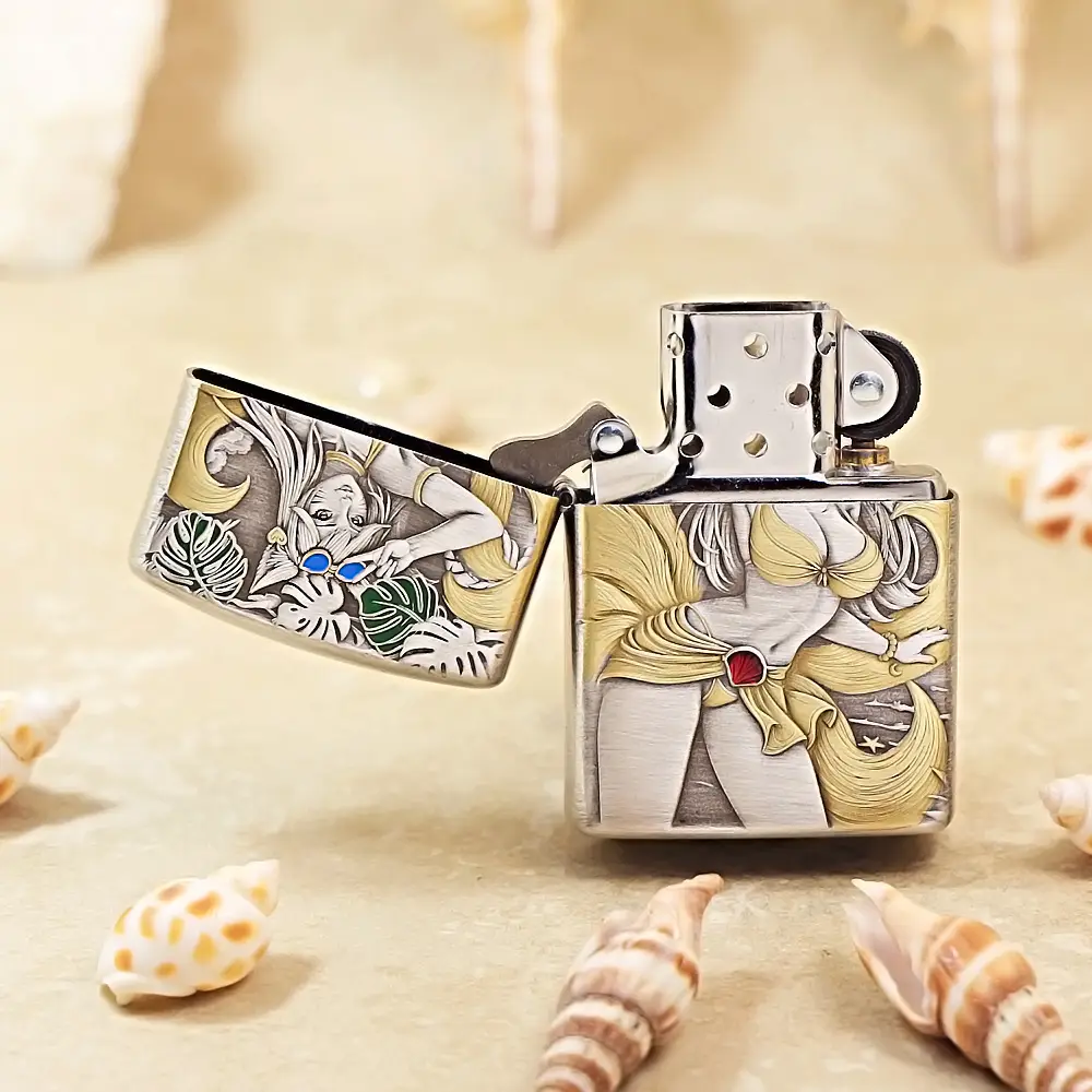 Zippo Armor Etching Silver With Gold Beach Beauty Lighter