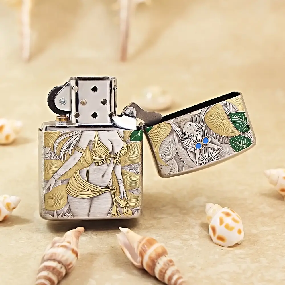 1 review for Zippo Armor Etching Silver With Gold Beach Beauty Lighter
