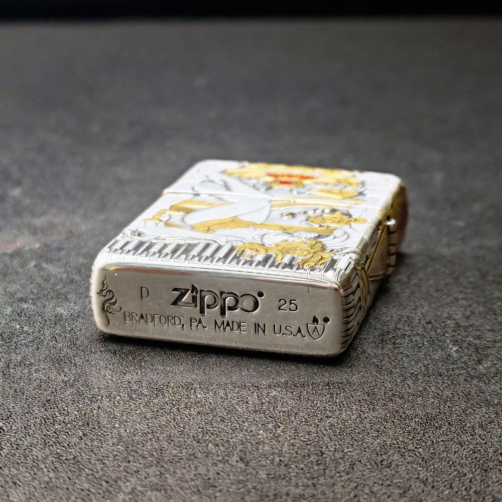 Zippo Armor Etching Silver With Gold Beethoven Für Elise Lighter
