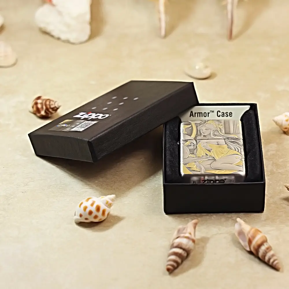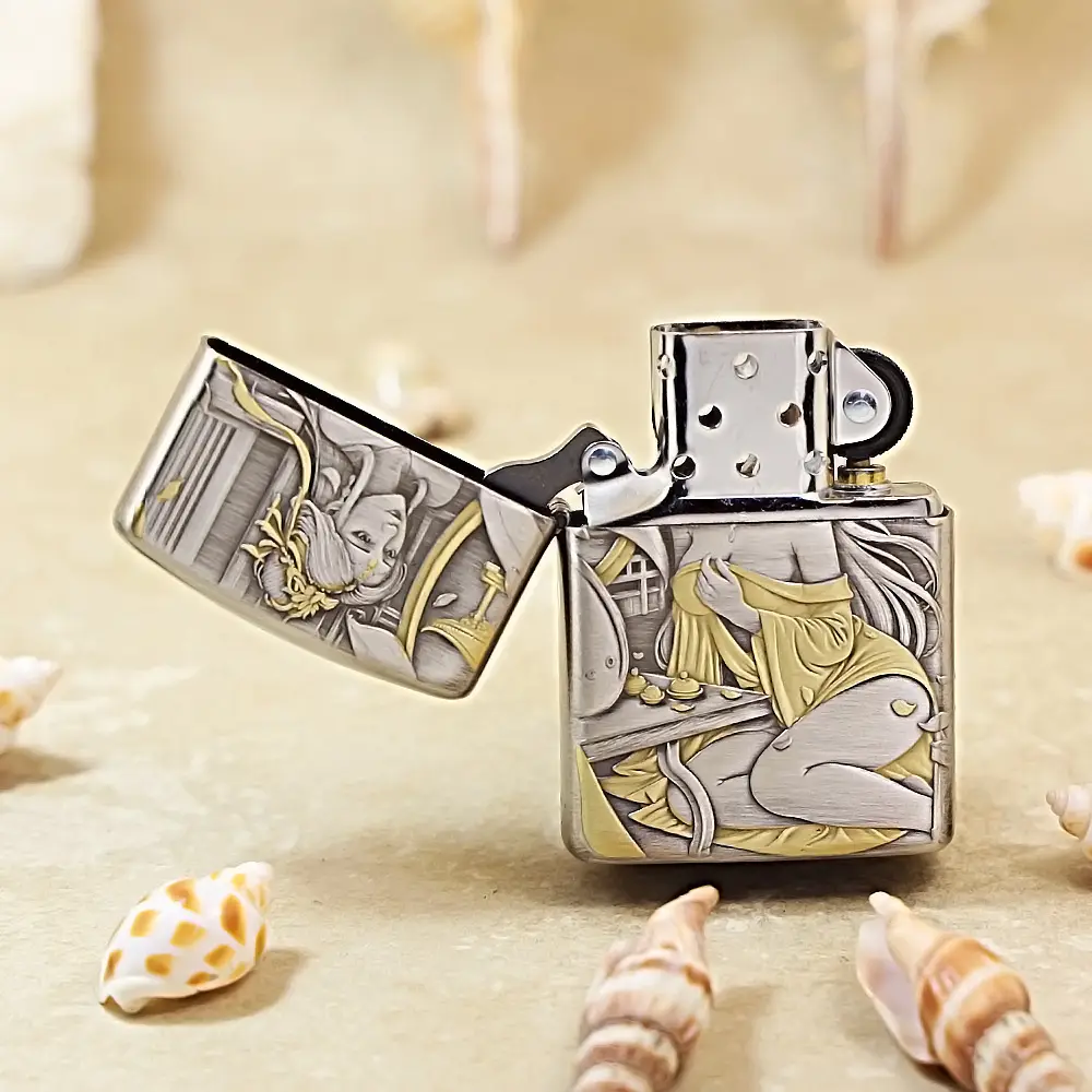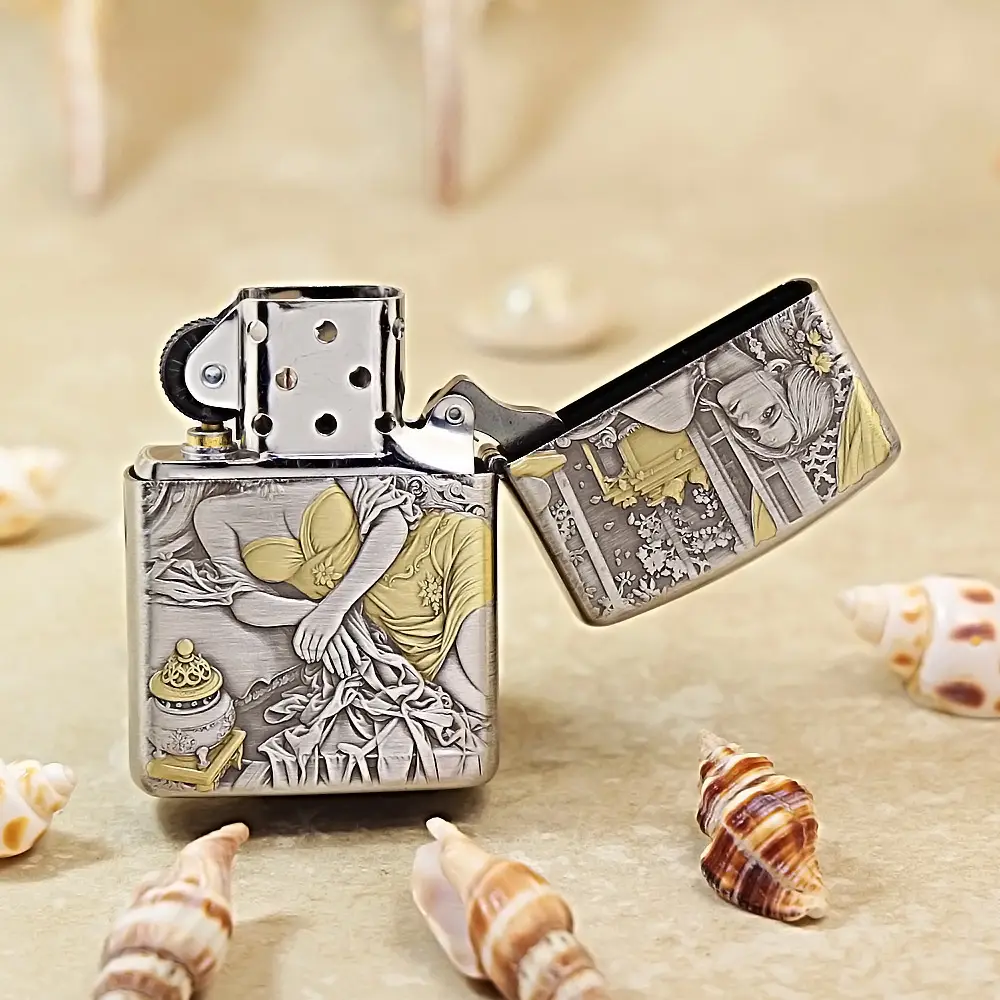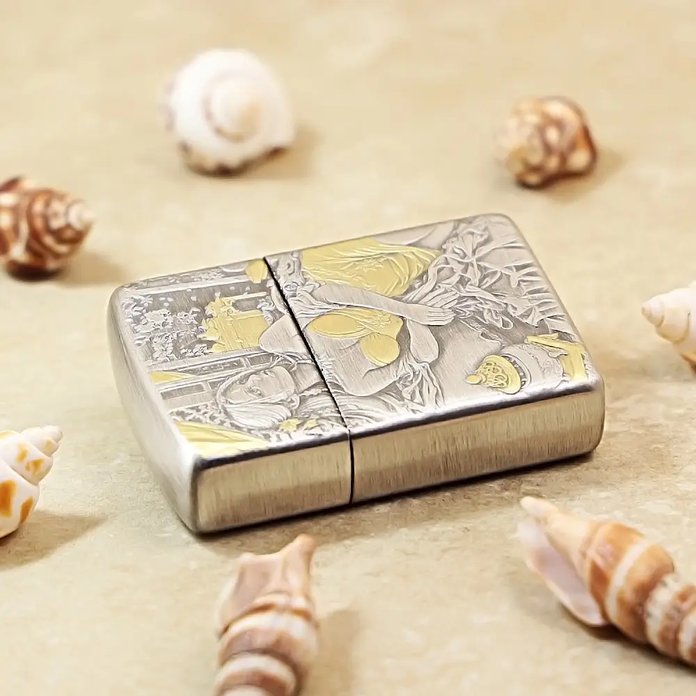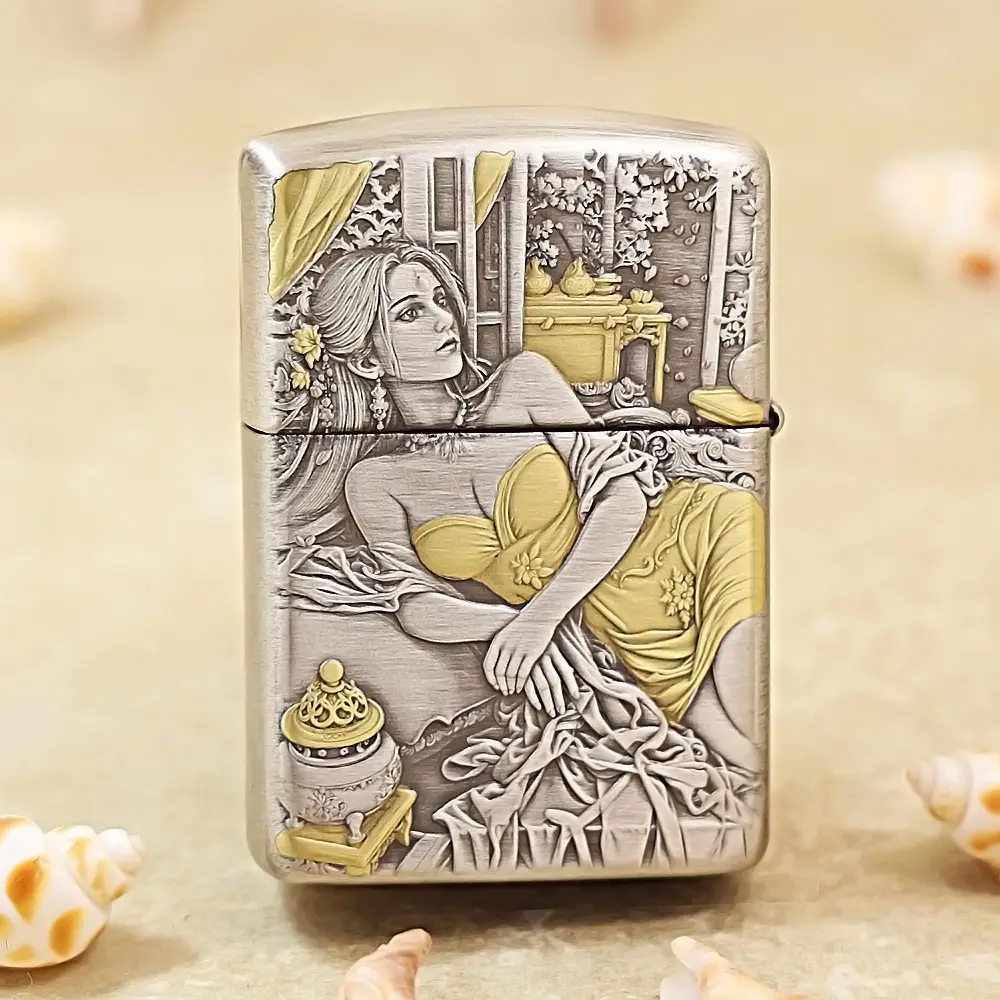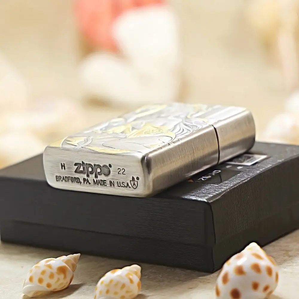 Zippo Armor Etching Silver With Gold Golden Hairpin Beauty Lighter