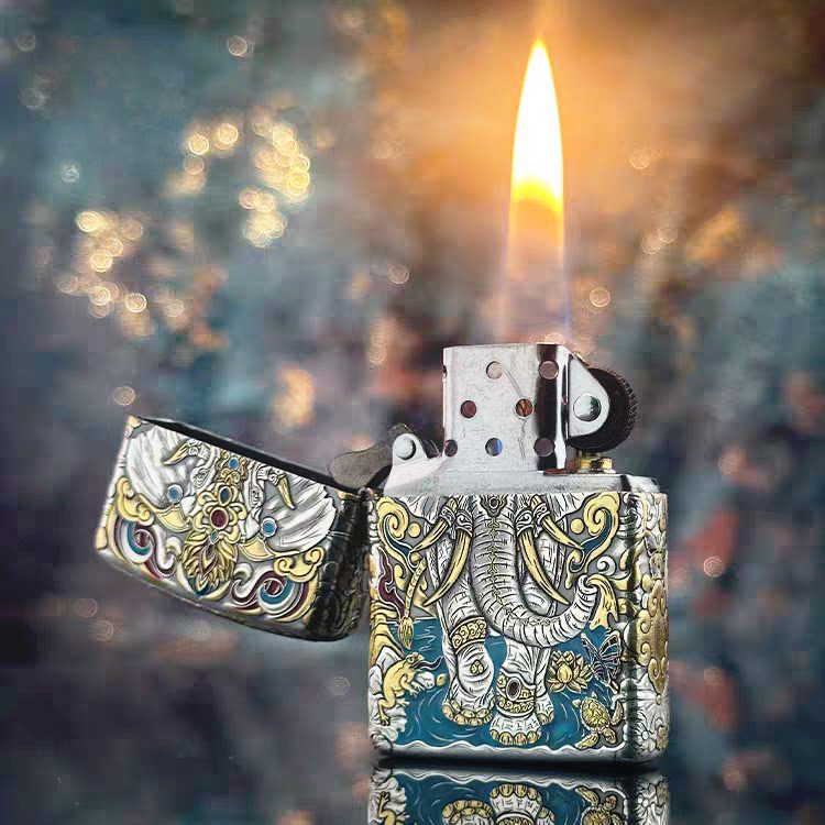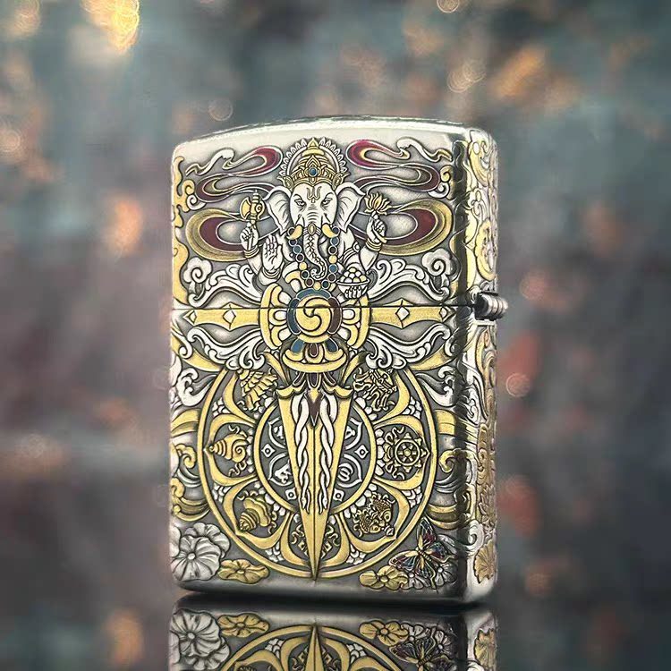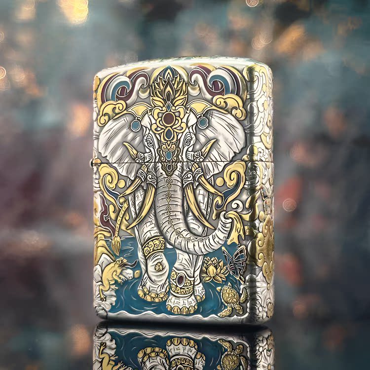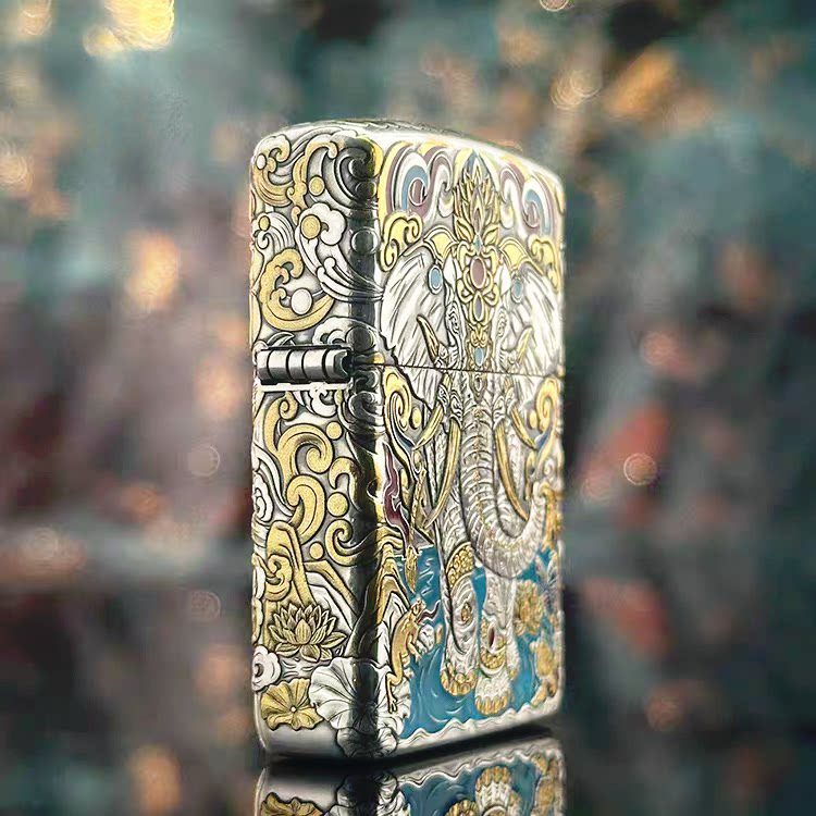 Zippo Armor Etching Silver With Gold Indian Elephant Lighter