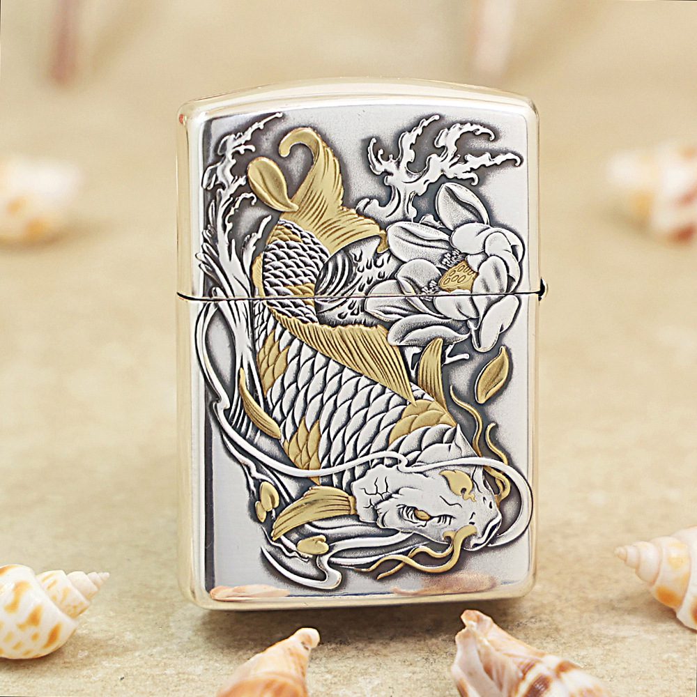 Zippo Armor Etching Silver With Gold Marine Life Lighter