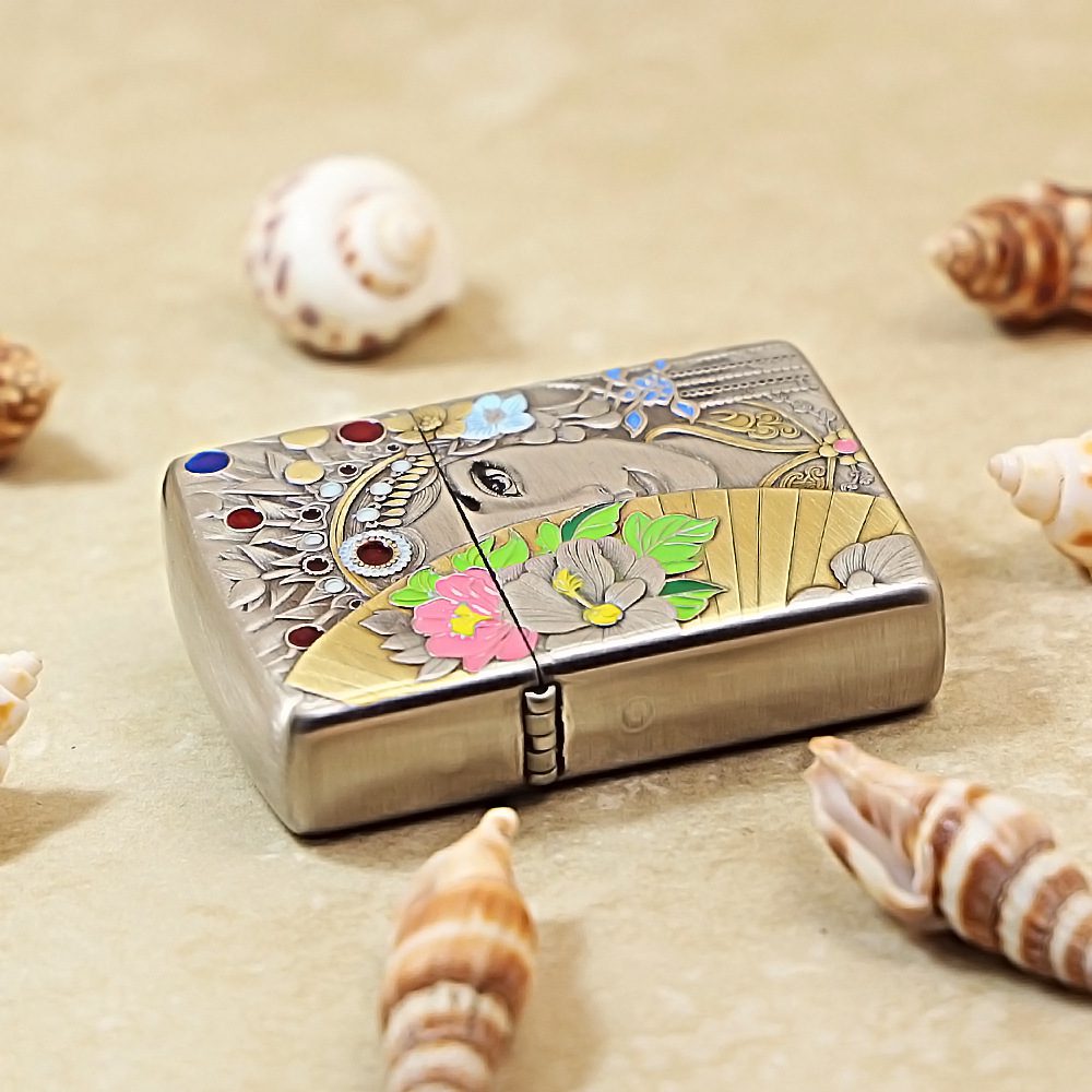 Zippo Armor Etching Silver With Gold Masked Beauty Lighter