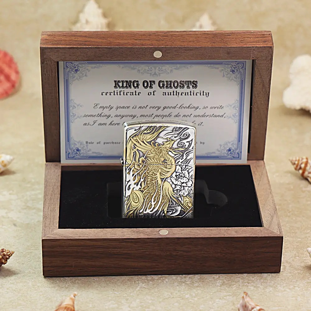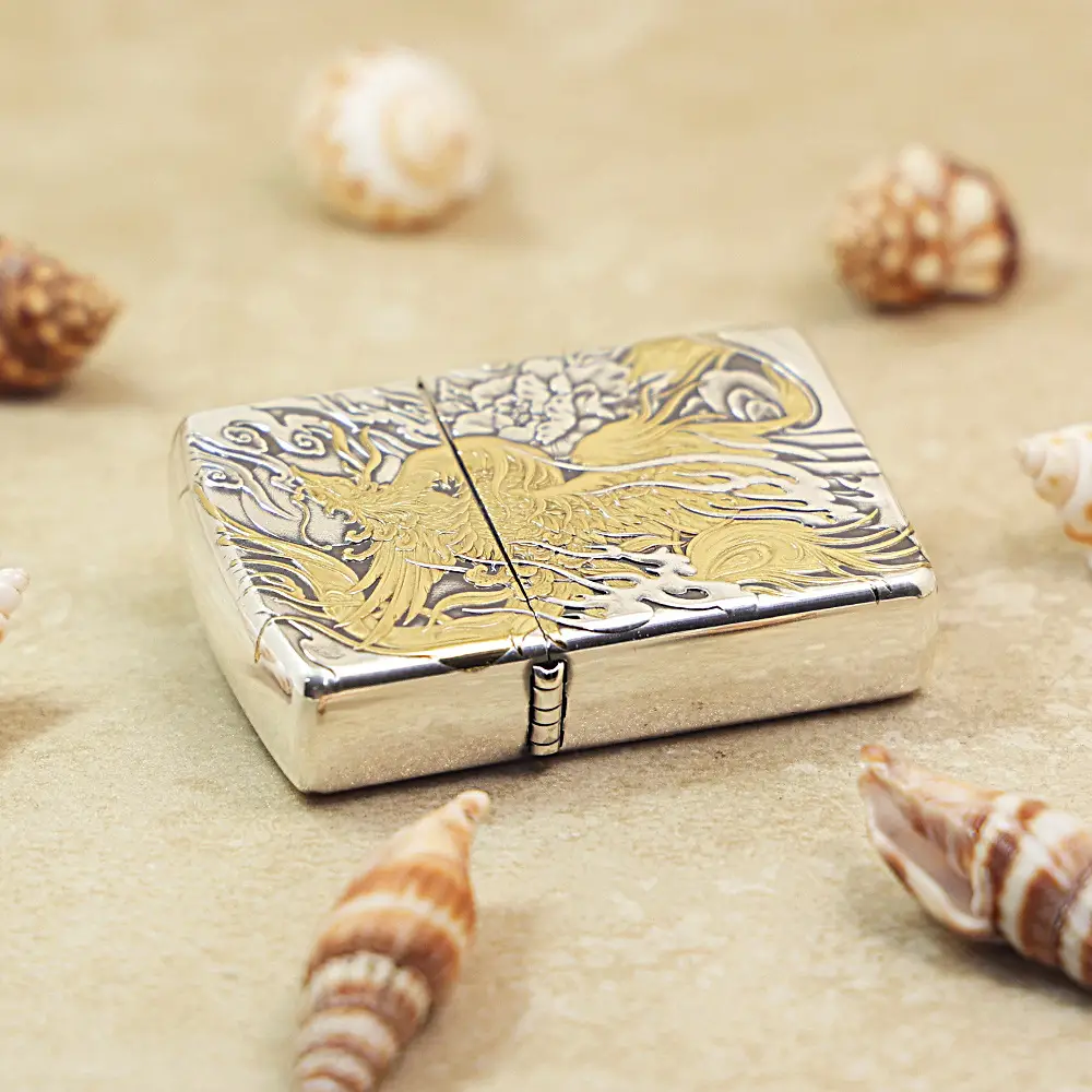 Zippo Armor Etching Silver With Gold Phoenix Lighter