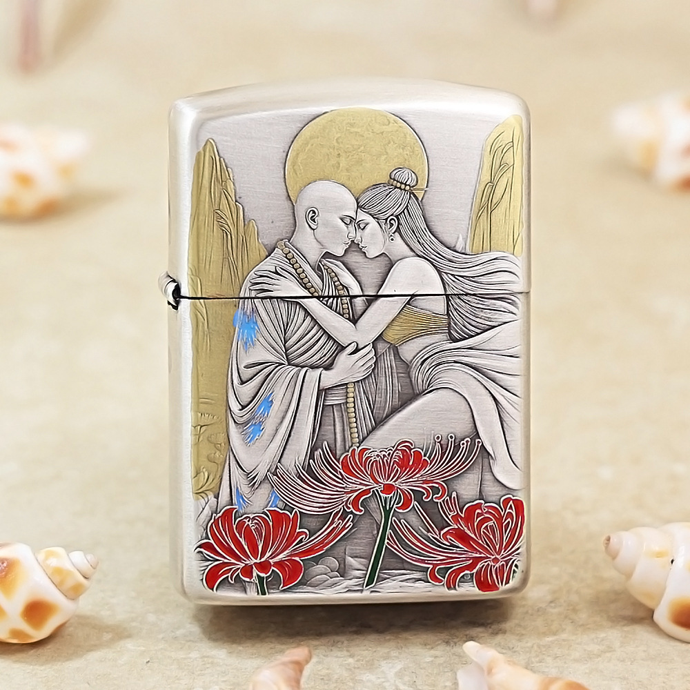 Zippo Armor Etching Silver With Gold Red Spider Lily Lighter