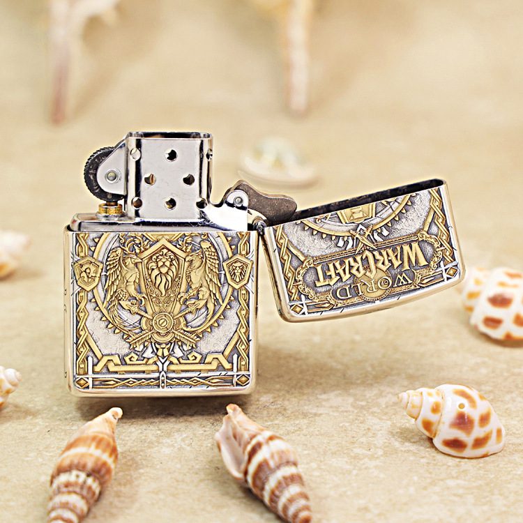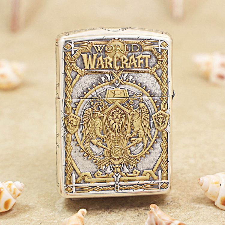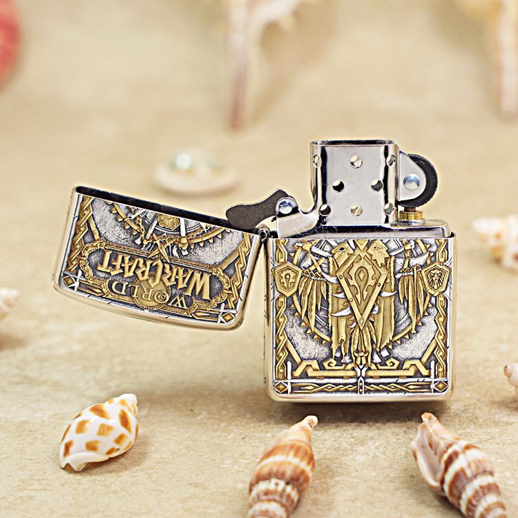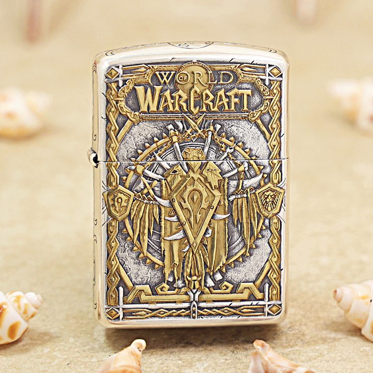 Zippo Armor Etching Silver With Inlay Gold World of Warcraft Lighter