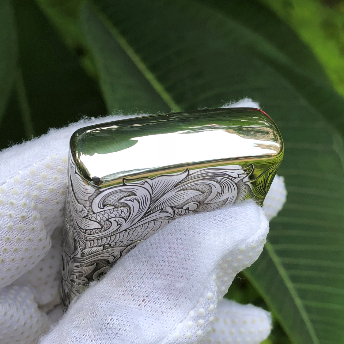- Stamped on the bottom of the lighter “Sterling Silver” & has the Armor stamp.