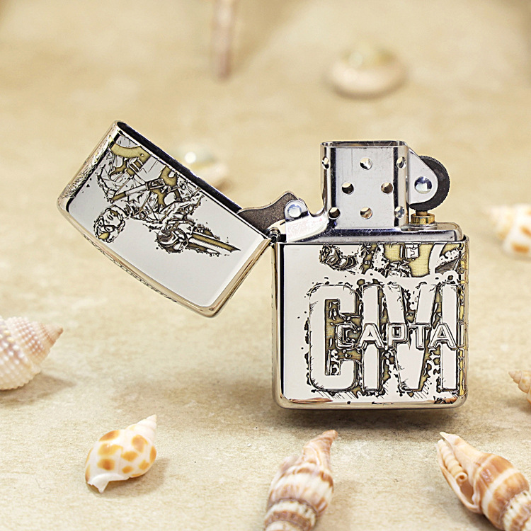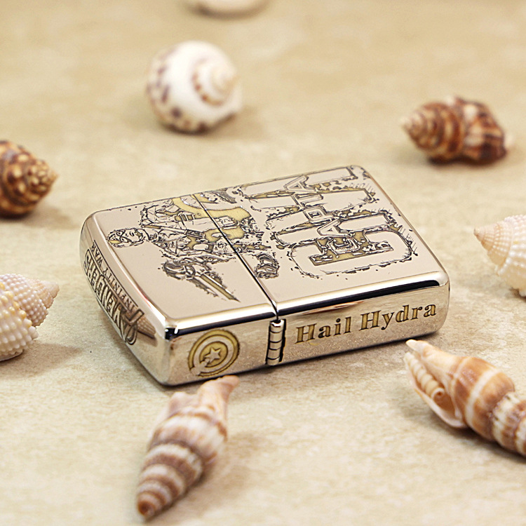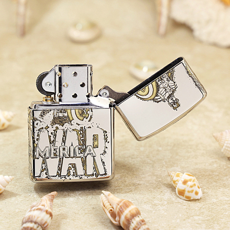 Zippo Brushed Chrome 5-Sides Engraved Captain America Lighter
