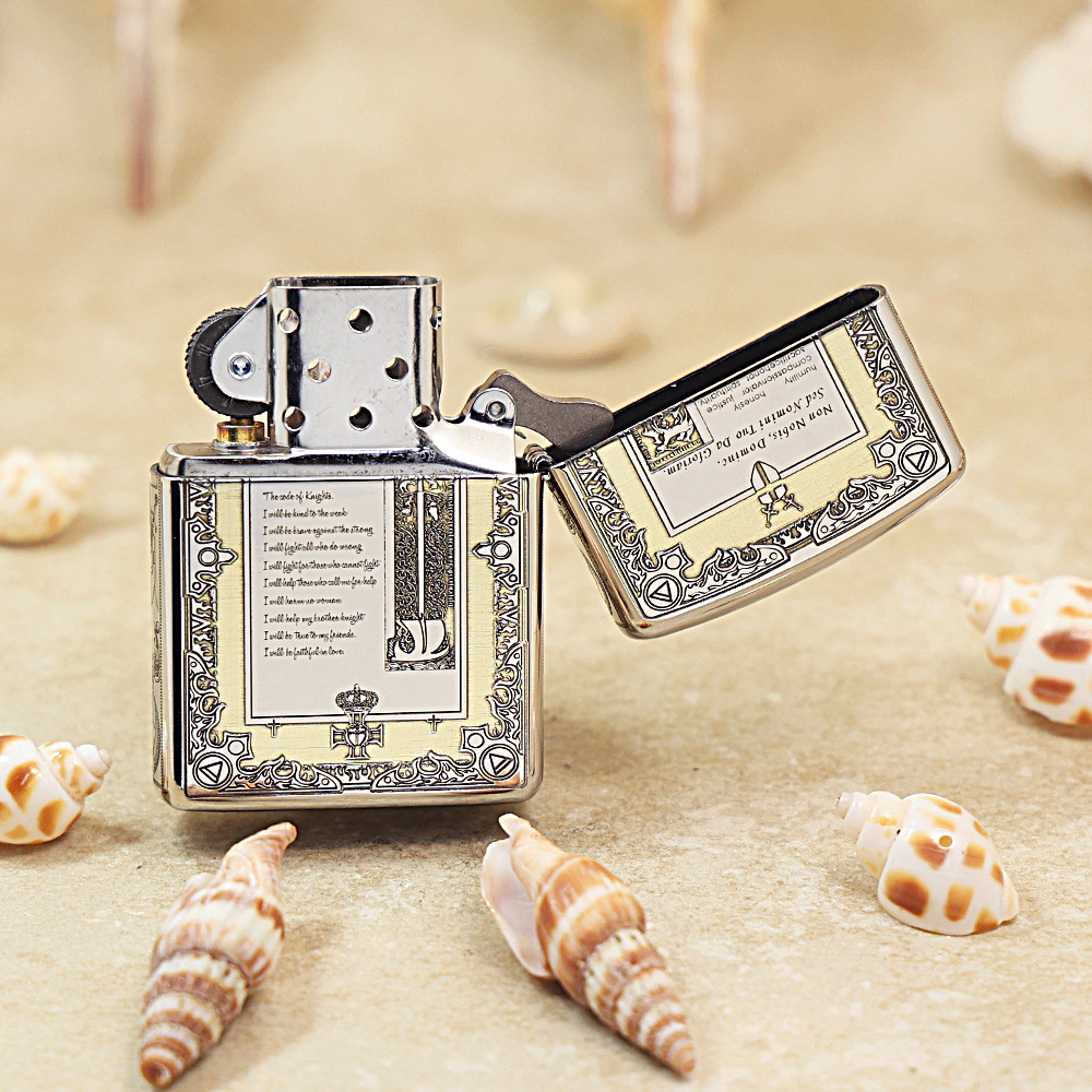 Zippo Brushed Chrome 5-Sides Engraved Knight’s Manifesto Lighter