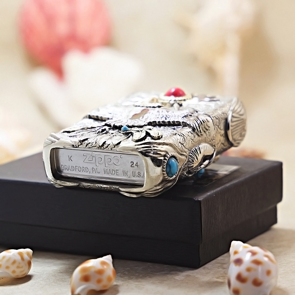 Zippo Eagle Feather Metal Inlay Ruby Gemstone Lighter