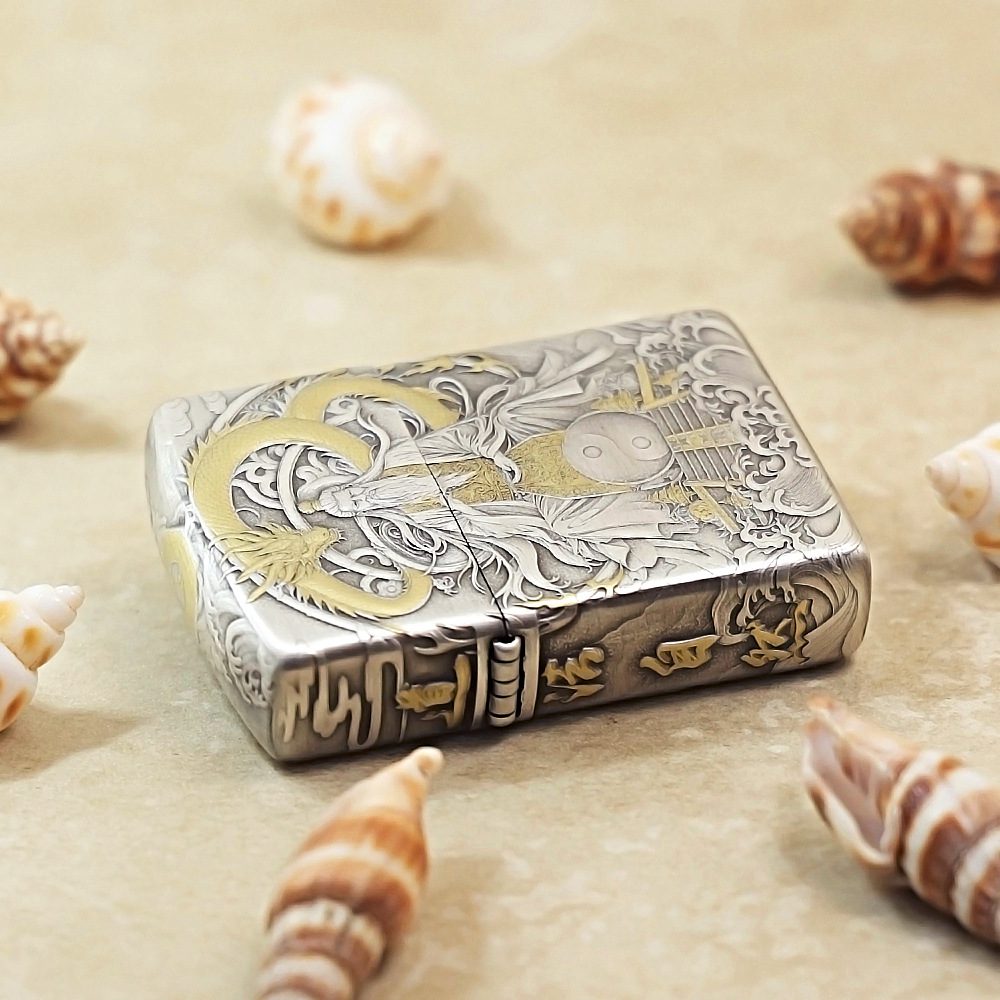 Zippo Etching Silver With Gold Mythological Figures Lighter