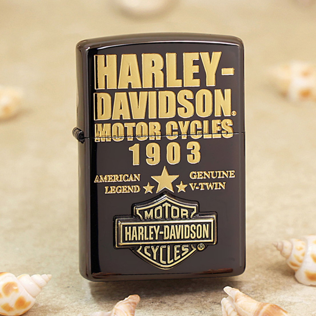 Zippo Harley Davidson Black Gold Emblem Logo Eagle 1903 HDP-52