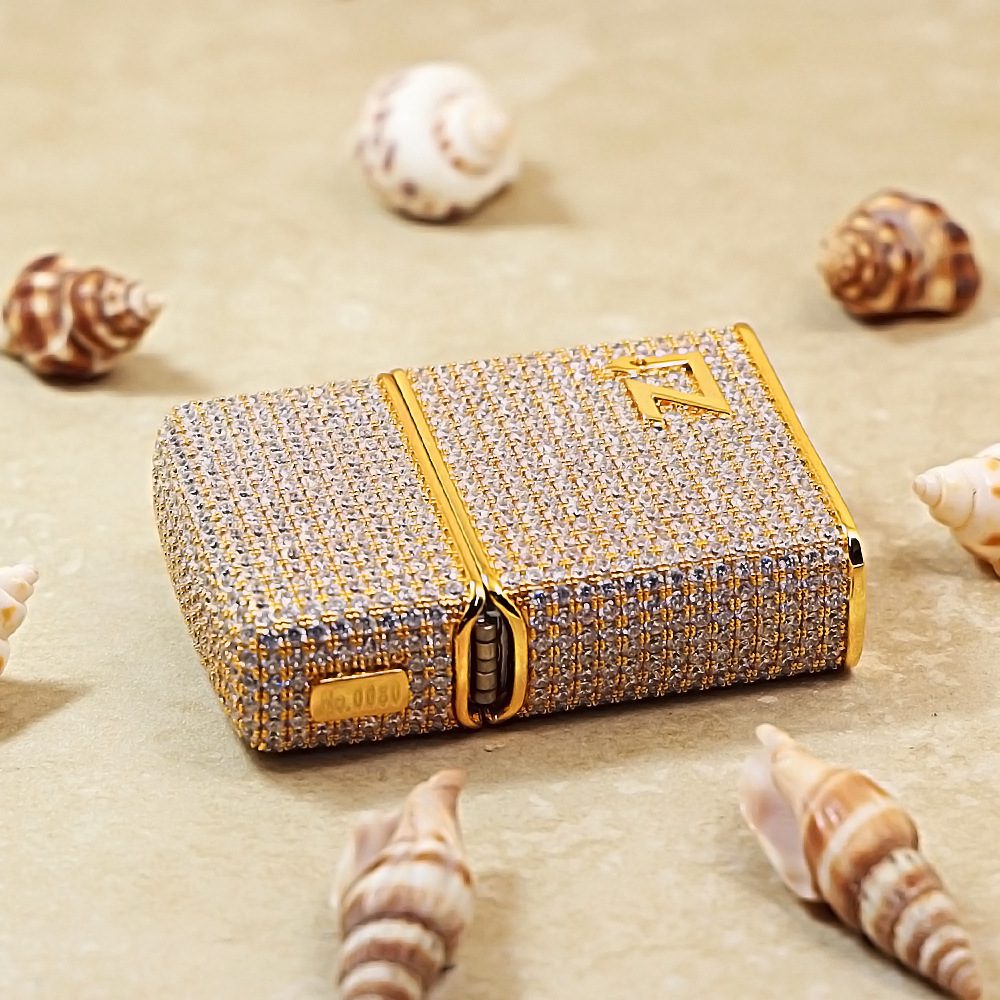 Zippo Luxury Swarovski Gold Crystal With Logo Lighter