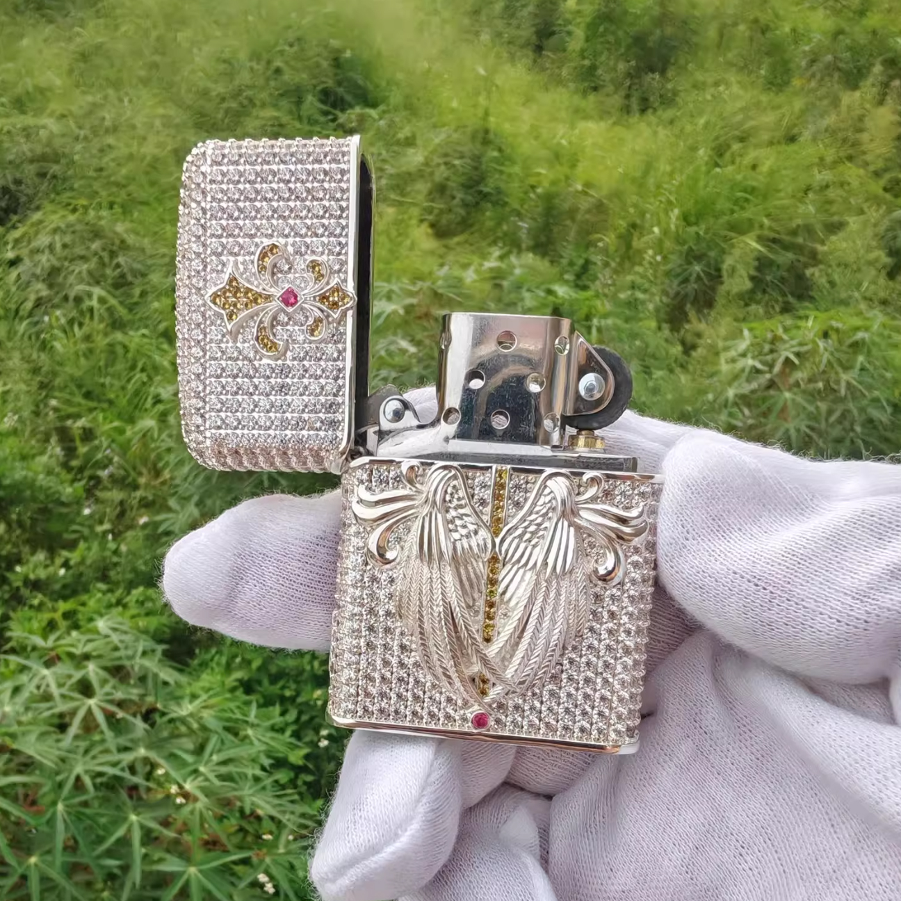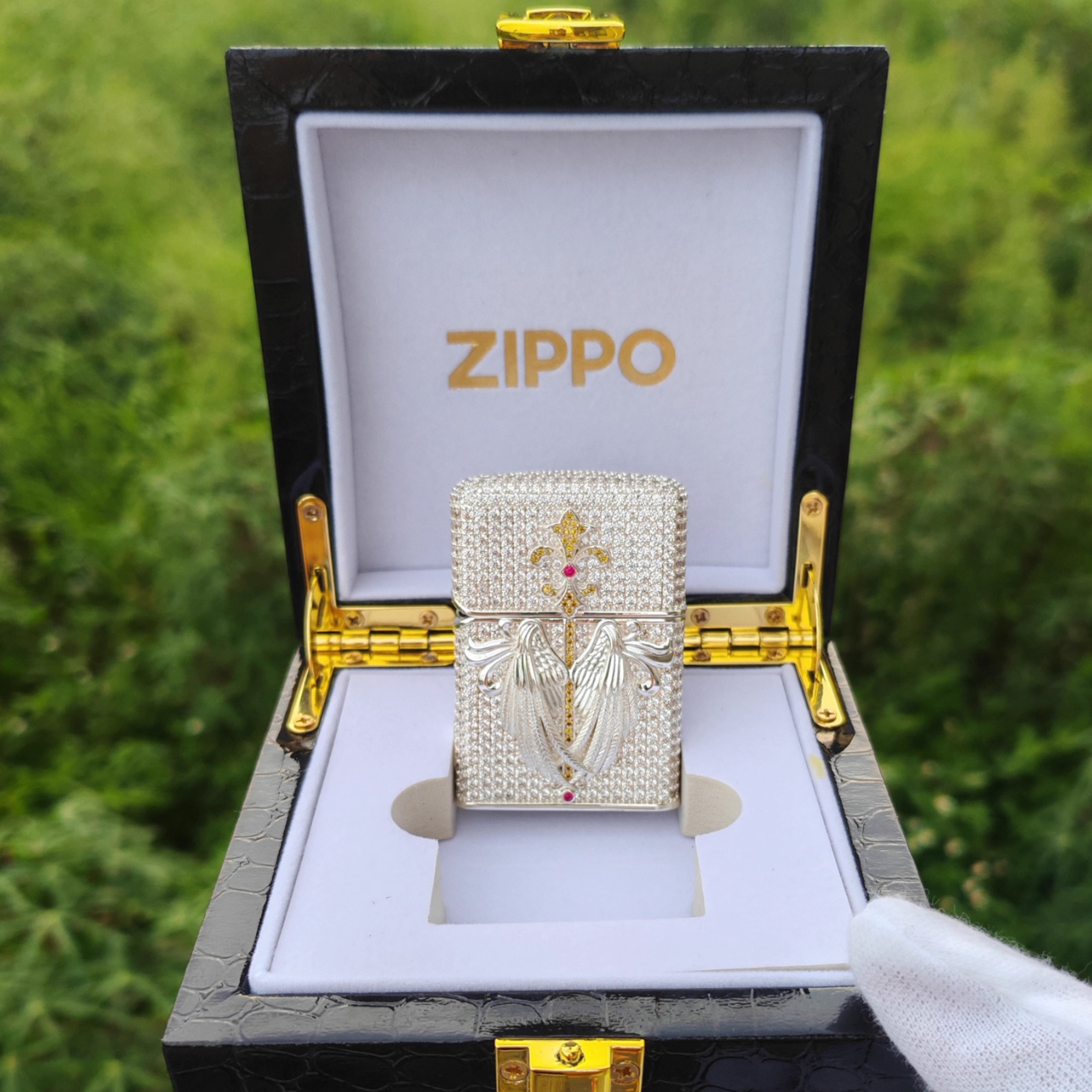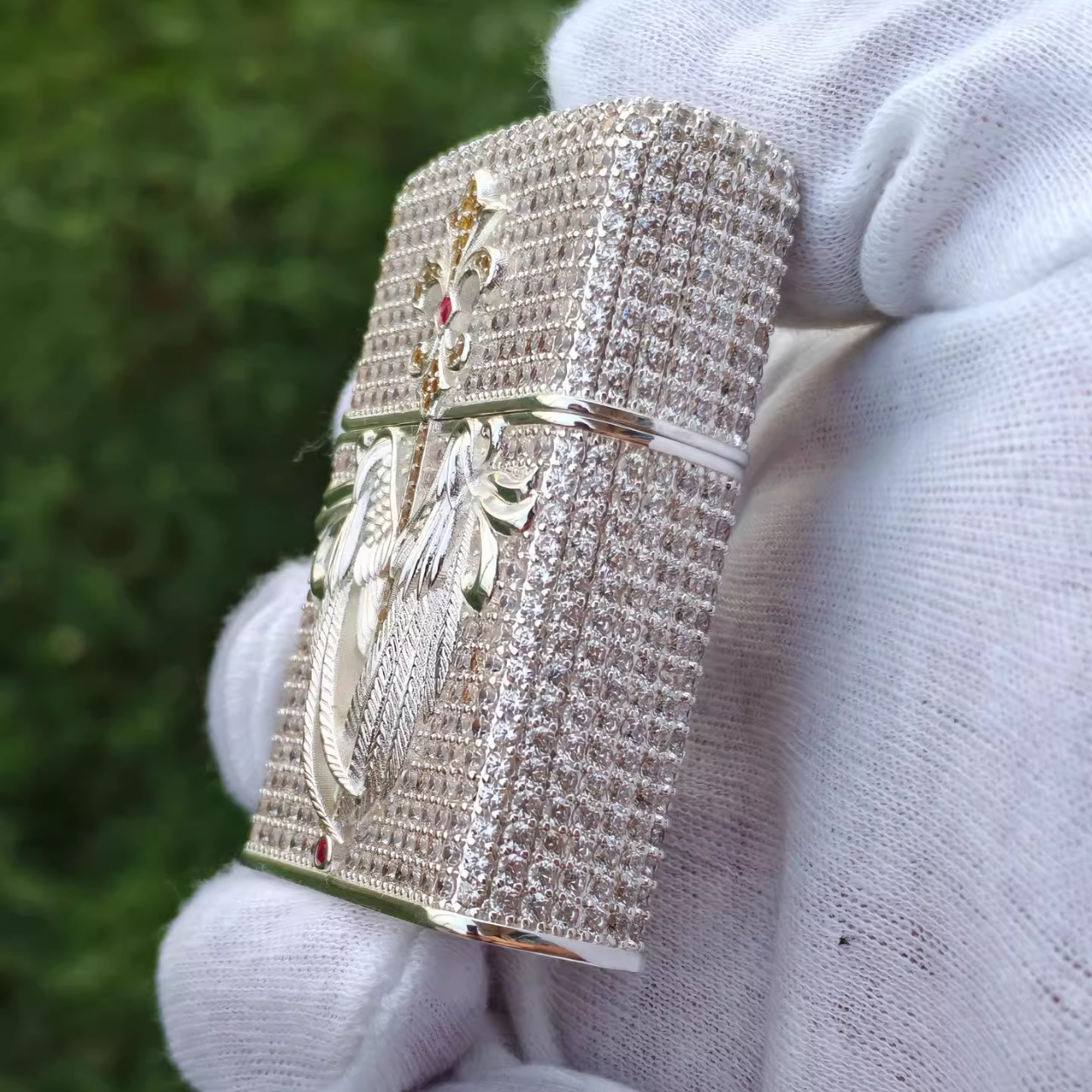 Zippo Luxury Swarovski Silver Crystal Angel Wings Lighter