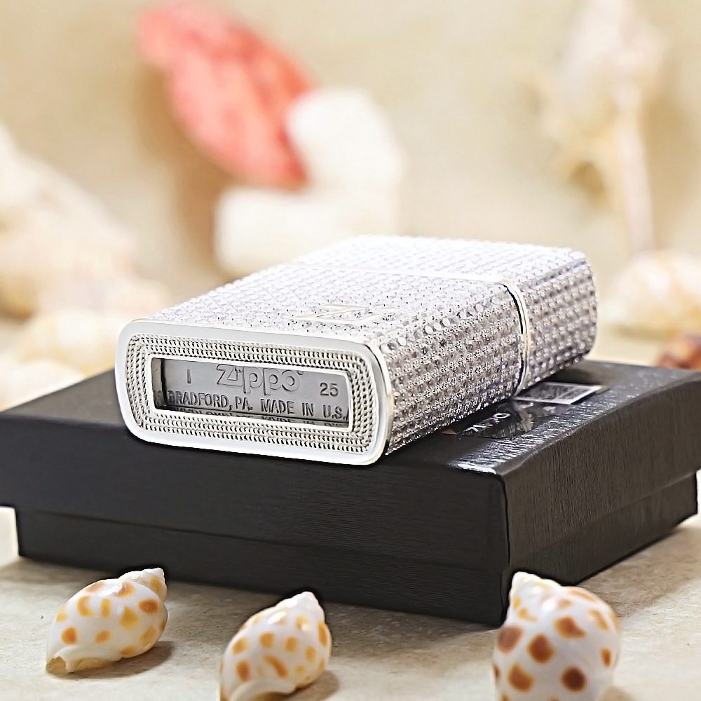 Zippo Luxury Swarovski White Crystal With Logo Lighter