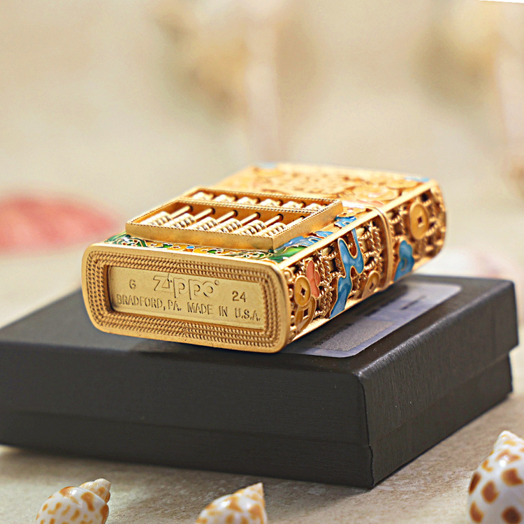 Zippo Plated Golden Enamel Jacket Wealth Abacus Lighter