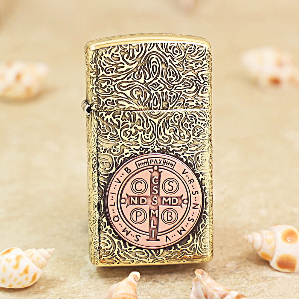 Zippo Slim Etching Brass Constantine Copper Badge Lighter