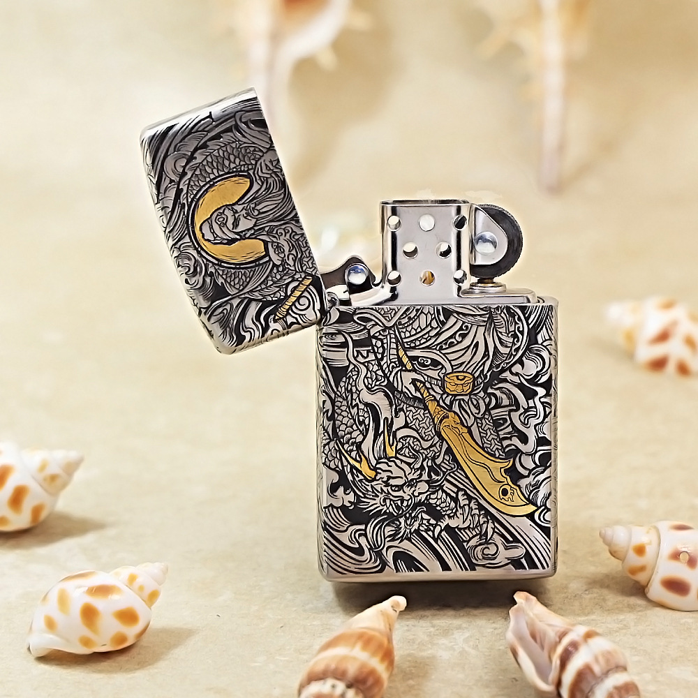 Be the first to review “Zippo Slim Plated Silver Guan Gong Lighter”